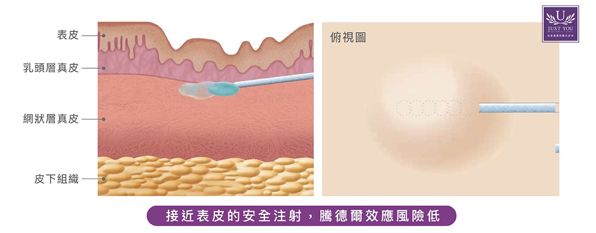 即使應用於肌膚淺層(如眼周、唇部、頸紋等細緻部位),亦能有效降低常見結塊感(俗稱「毛毛蟲」)及因凝膠分布不均所造成的騰得耳效應(Tyndall effect) 風險,因此成為許多追求自然細緻效果族群所青睞的仿生玻尿酸選擇。